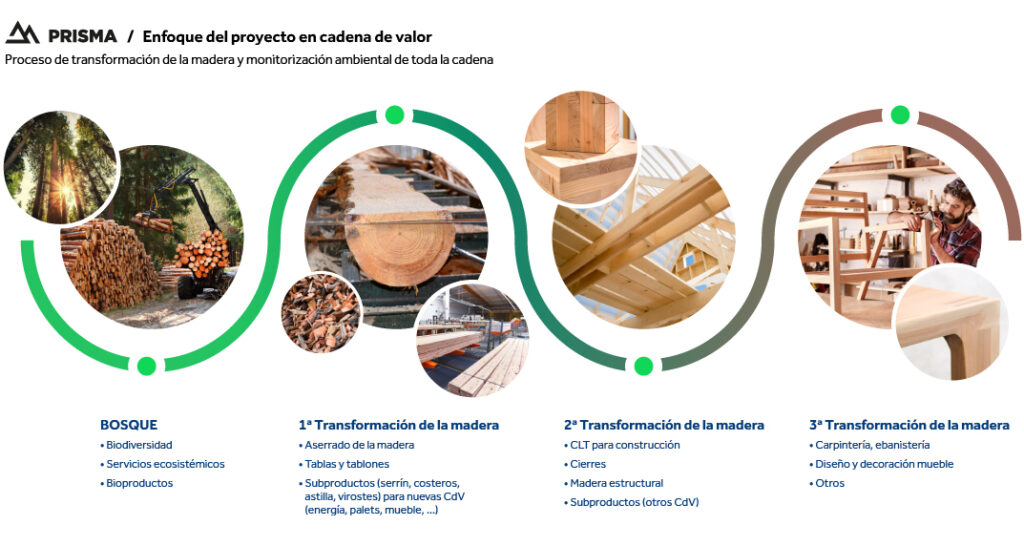 PRIMA abarca la totalidad de la cadena: desde el monte hasta el consumidor final. En el proyecto se evalúan los impactos ambientales de las acciones de I+D+i desarrolladas en diversas zonas piloto. Bajo este marco, se validan herramientas digitales destinadas a la planificación y la gestión forestal multiobjetivo, buscando optimizar tanto los recursos disponibles como los servicios ecosistémicos.